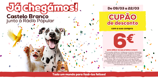A partir do dia 6 de março, tem encontro marcado connosco na nova loja de animais Kiwoko em Castelo Branco. Vai perder a nossa abertura?