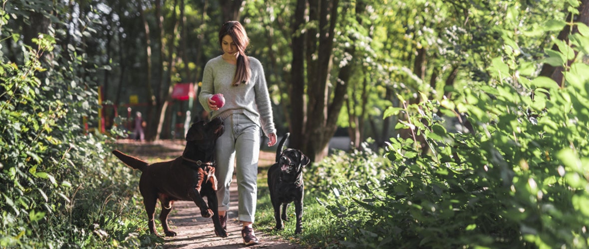 | Os parques e os bosques são uma excelente escolha, pois proporcionam sombra e um ambiente muito mais fresco. A relva também proporciona uma área mais natural para os cães explorarem e farejarem à vontade. |