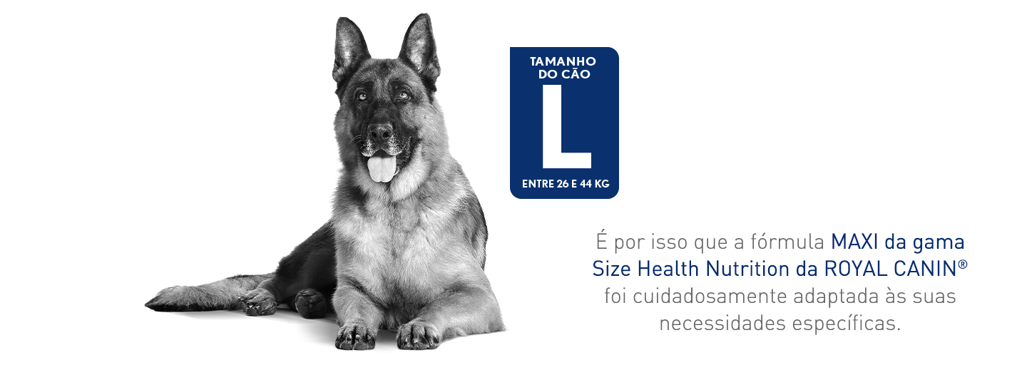 É por isso que a fórmula MAXI da gama Size Health Nutrition da ROYAL CANIN® foi cuidadosamente adaptada às suas necessidades específicas.