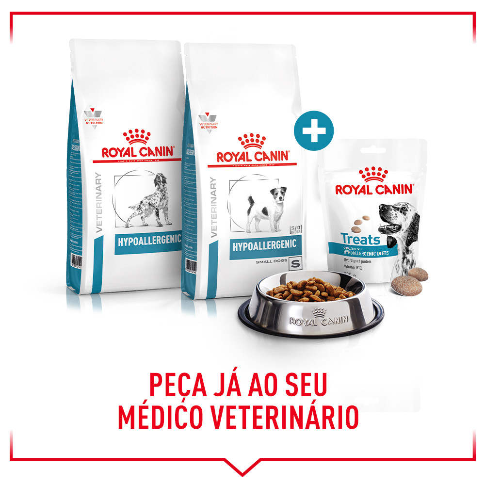 Os snacks ROYAL CANIN® HYPOALLERGENIC Treats são compatíveis com: