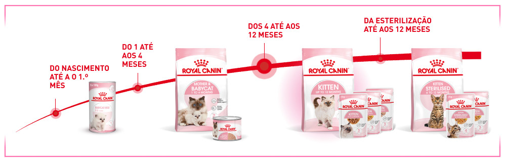 Os gatos na 2º fase de crescimento continuam a crescer, porém mais devagar. Nesta idade é quando a estrutura óssea é consolidada e ainda precisam elevadas doses de energia, porém em menor quantidade do que na 1ºetapa. Entre o 3º e 7º mês aparecem os dentes permanentes e o sistema imunológico continua a amadurecer. Uma etapa na qual os gatos precisam cobrir as suas necessidades específicas para poder alcançar uma vida adulta saudável. Graças à comida húmida Royal Canin Kitten Instinctive o seu animal de estimação conseguirá todos os nutrientes necessários nesta etapa através do alimento.