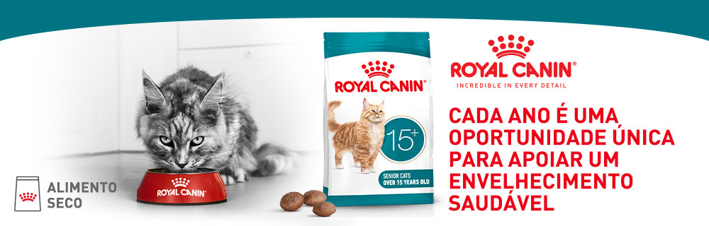A ração Royal Canin Ageing +15 para gatos seniores é um alimento completo e equilibrado, formulado para gatos de idade avançada a partir dos 15 anos. Os seus grãos têm um formato especial que facilita a mastigação, testados diretamente em gatos mais velhos para garantir a sua aceitação.